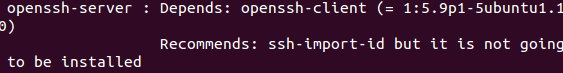 sudo apt-get install openssh-server若不出现任何提示为安装成功,启动ssh服务即可,若出现以下提示: