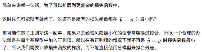 在解决回归问题时,如果损失函数是均方误差损失函数则求解残差为(真实值-预测值)。但是当损失函数是其他的时候,我们用损失函数的负梯度在当前模型的值,将它作为残差的估计。对于平方损失函数,它就是所说的残差;对于一般损失函数,它是残差的近似。