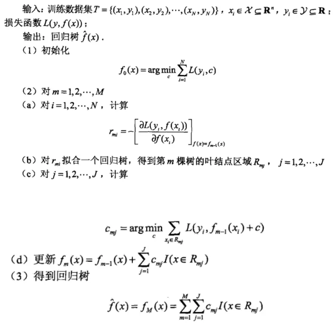 提升树利用加法模型与前向分步算法实现学习的优化过程,当损失函数是平方损失和指数损失函数时,每一步的优化是很简单的,但对一般损失函数而言,往往每一步优化并不是十分容易,针对这一问题,Freidman提出了梯度提升算法,这是利用最速下降法的近似方法,其关键是利用损失函数的负梯度在当前模型的值作为提升树算法中的残差的近似值,拟合一个回归树,即: