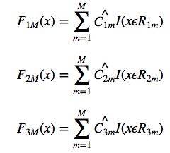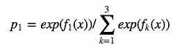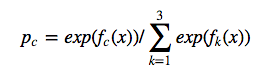 当训练完毕以后,新来一个样本 x1 ,我们需要预测该样本的类别的时候,便可以有这三个式子产生三个值,f1(x),f2(x),f3(x)。样本属于某个类别c的概率为