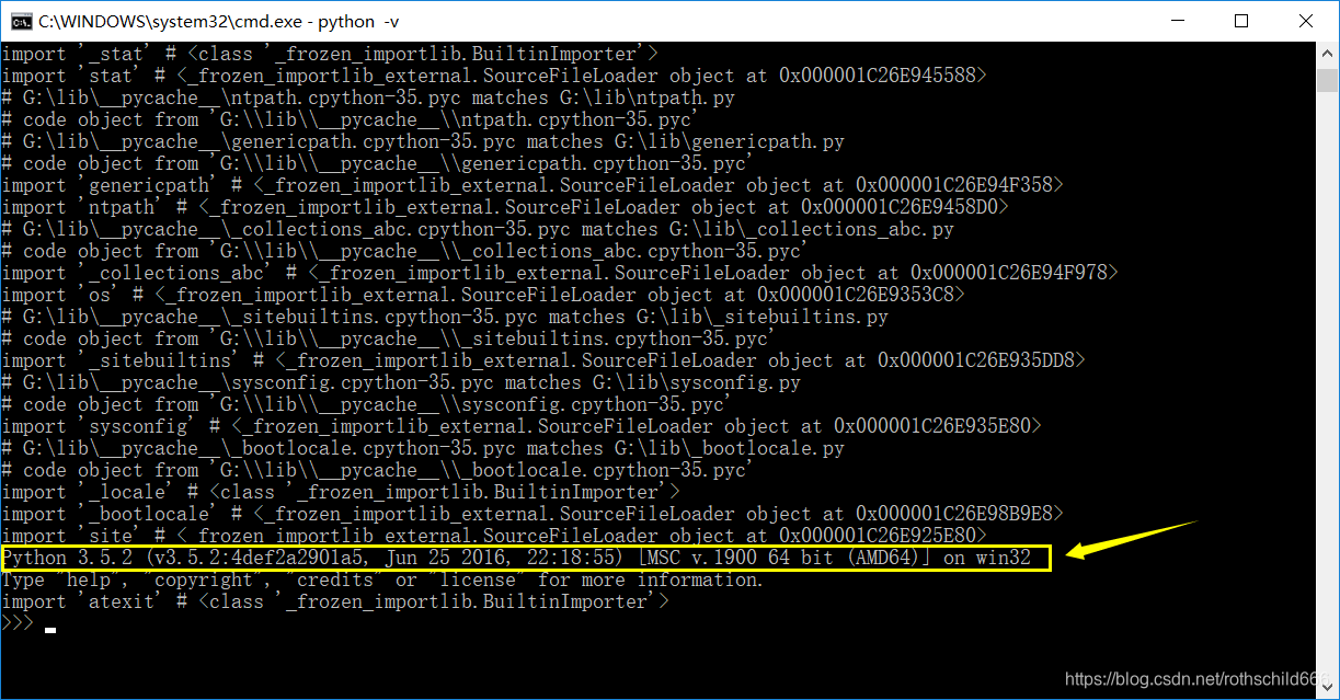 首先按键盘“windows键+r”打开资源管理器 ,在打开栏输入“cmd”然后点击“确定”。然后通过转盘转文件夹到你的python安装所在的文件夹为止 (注意:资源管理器一开始是C盘,我电脑安装的python在G盘python文件夹,所以我通过:1、输入“G:”然后按回车键,完成从C盘转到G盘 ;2、然后“cd python”按回车键完成从G盘转到python文件夹) 。再输入“Python -v”按回车键,等待资源管理器显示电脑安装的python版本(见下图黄色箭头指向的黄色框中,我的python版本是3.5.2)。