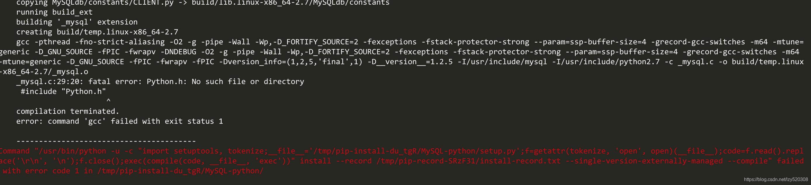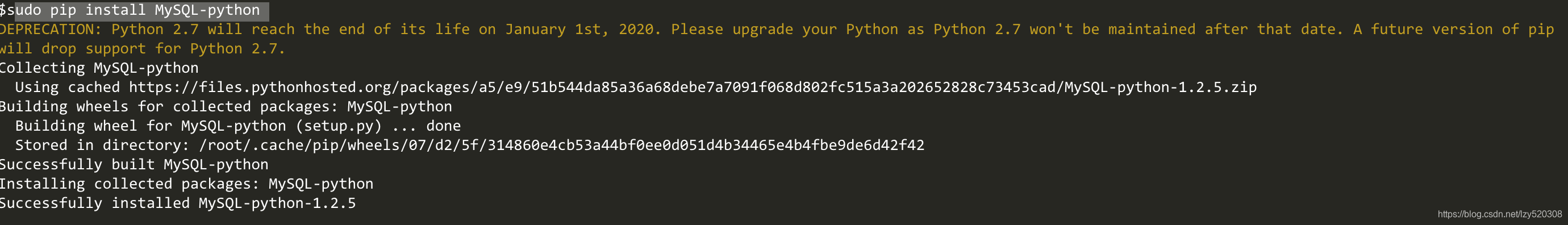 2、再安装sudo pip install mysqlclient,安装成功后执行第3步。
