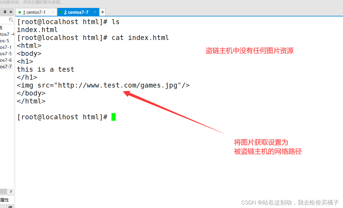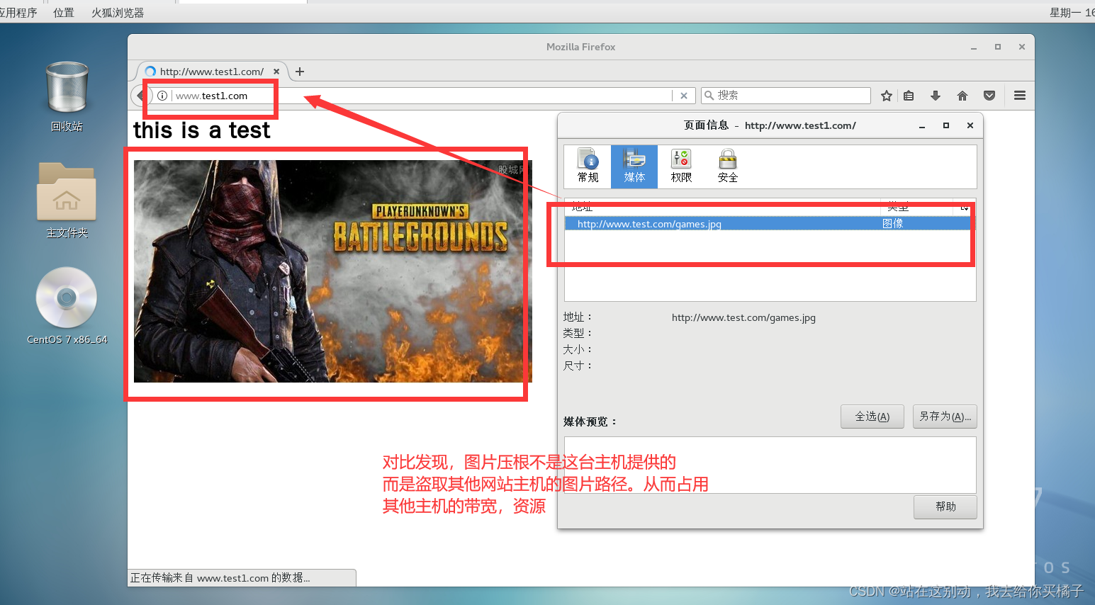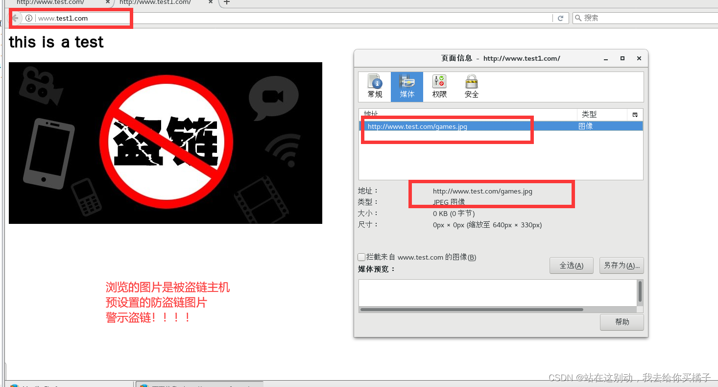 本实验中我准备了两台虚拟机,一台是源码编译安装apche服务的主机,作为被盗链的主机,域名设置为www.test.com 另一台为yum安装apache服务的主机,作为盗链的主机,域名设置为www.test1.com