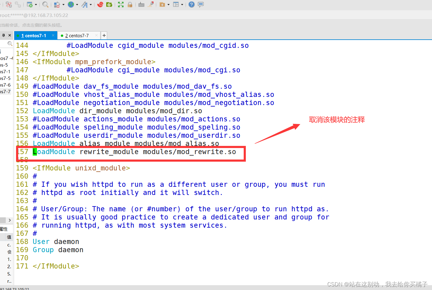 vim /usr/local/httpd/conf/httpd.conf--157行--取消注释