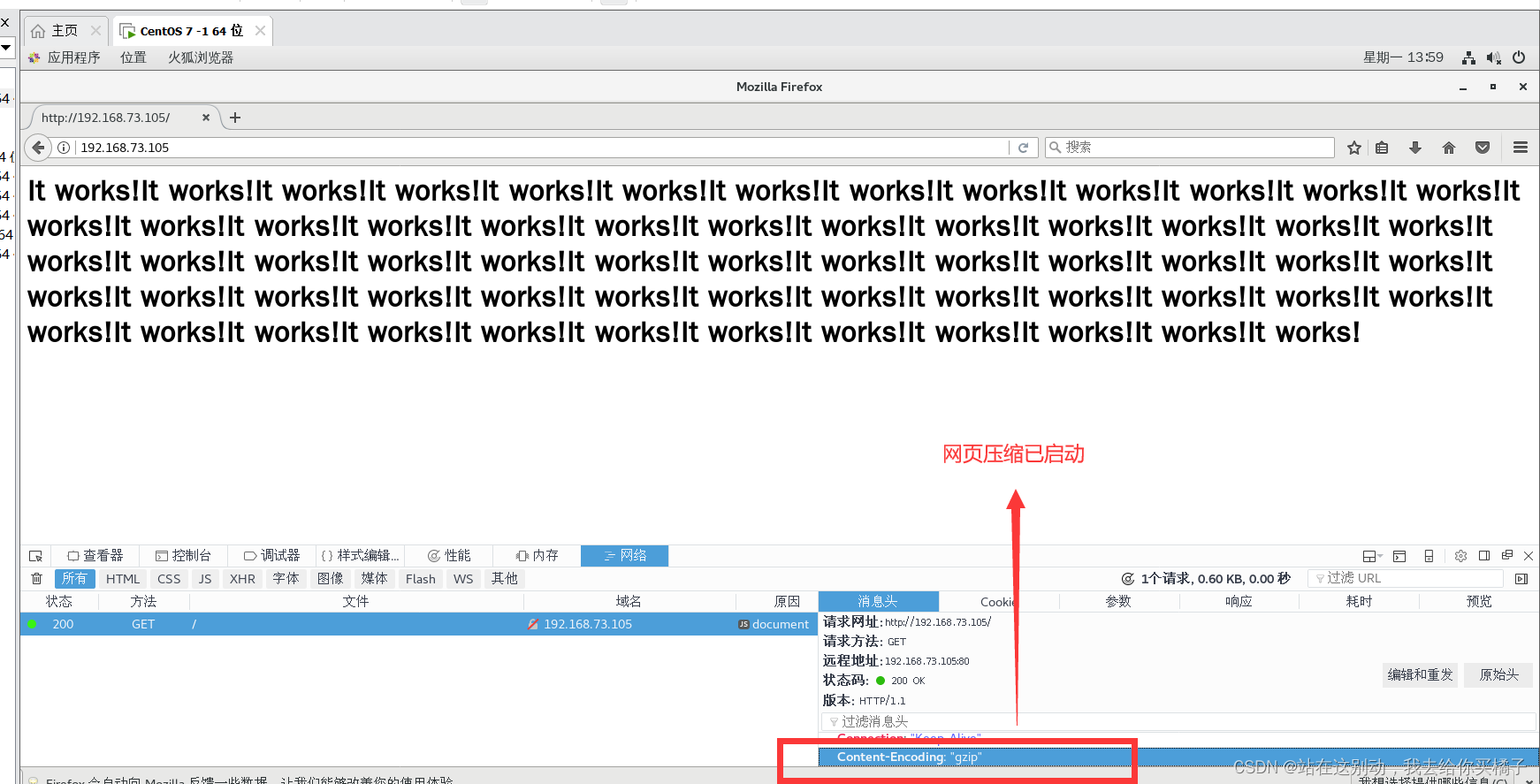 浏览器访问 http://192.168.80.10 ,双击200响应消息查看是否存在 Content-Encoding: gzip