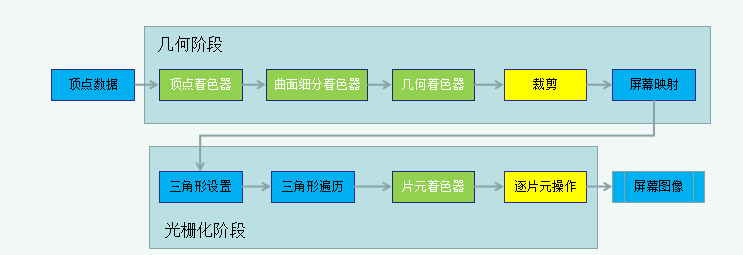 注2:几何阶段和光栅化阶段,开发者无法拥有绝对的控制权,其实现的载体是Gpu。Gpu通过实现流水线化,大大加快了渲染速度。虽然我们无法完全控制这两个阶段的实现细节,但是Gpu向开发者开放了很多控制权。