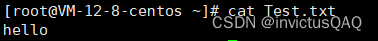 当然echo也可以向文件中写入内容,比如下面的代码,这是一种最简单的写入方法。代表向Test.txt这个文件中写入hello。