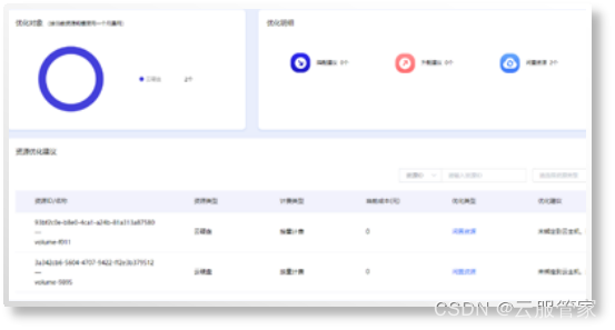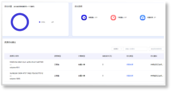 自动给出如闲置资源、利用率低的资源、购买方式不合理的资源等,帮助用户降低成本。