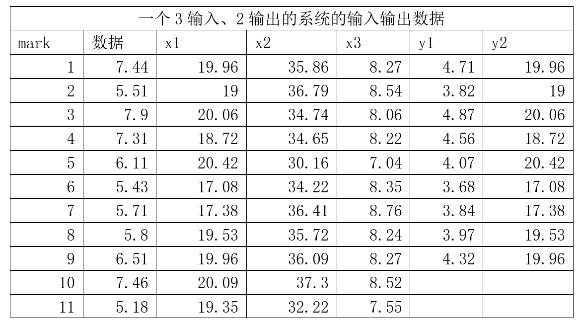 综上,当输入的数值为x1,x2,x3分别为20.09,37.3,8.52和19.35,32.22,7.55时,则y1和y2的预测值如下表所示: