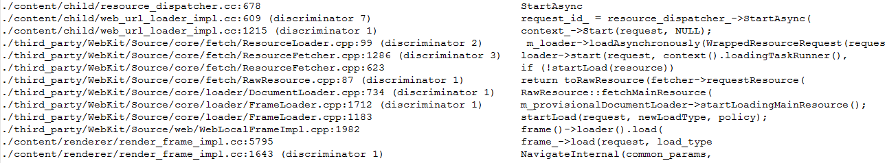 然后我默默的翻翻罗升阳老师的博客,在EnsureResourceBufferIsInitialized函数中添加了堆栈打印,因为EnsureResourceBufferIsInitialized首先检查成员变量buffer_是否指向了一个ResourceBuffer对象,并且这个ResourceBuffer对象描述的共享内存是否已经创建。URL的加载是Render向Browser发送一个类型为ResourceHostMsg_RequestResource的IPC消息,Browser收到这个IPC消息之后,就会通过HTTP协议请求Web服务器将网页的内容返回来。请求得到响应后,Browser就会创建一块共享内存,并且通过一个类型为ResourceMsg_SetDataBuffer的IPC消息将这块共享内存传递给Render进程的。
