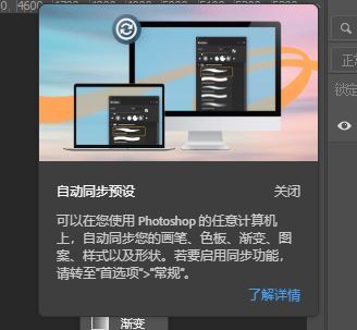 最新的PS2021的自动同步预设提示,但是打开首选项又没有这一项,挺烦的,解决方法(临时):