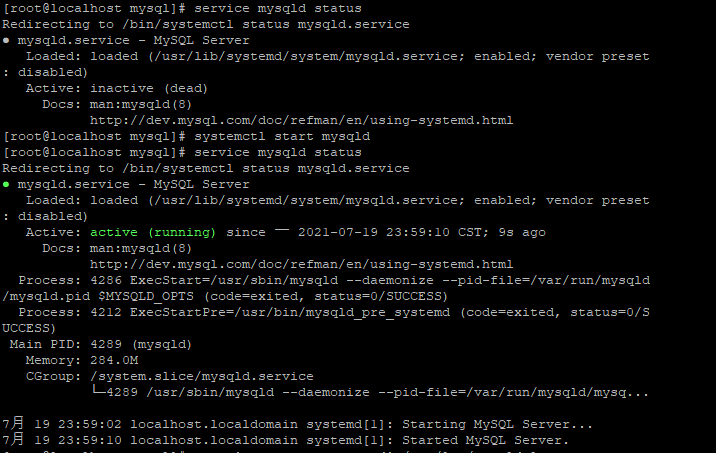 6.启动mysql服务:systemctl start mysqld