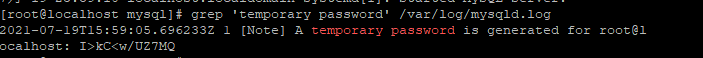 [root@localhost mysql]# grep 'temporary password' /var/log/mysqld.log