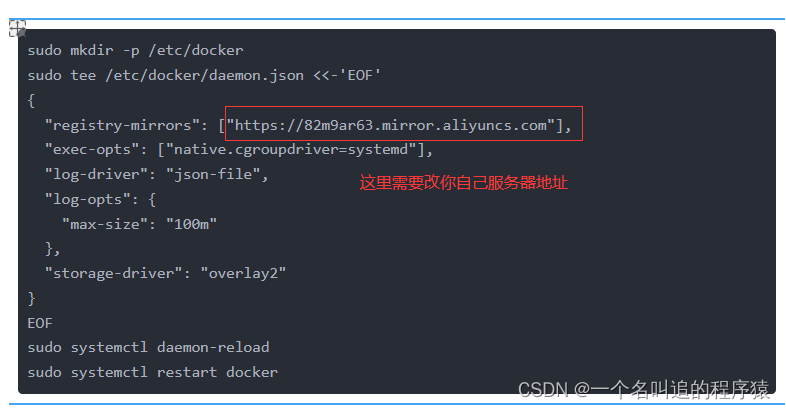 sudo tee /etc/docker/daemon.json <<-'EOF'
