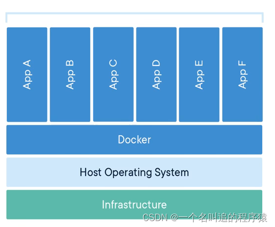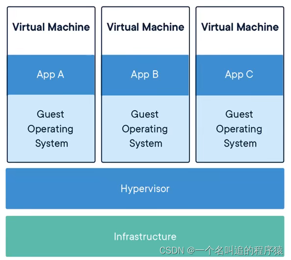 假设虚拟机 AppA、AppB、Appc都占 6 个 G,那个在内存泄漏的情况下,怎样都不会超过 6 个 G,这种技术叫做虚拟化技术。但用过虚拟机的朋友都知道虚拟机的通病(基础镜像GB级别、创建使用稍微复杂、隔离性强、启动速度慢、移植与分享不方便等缺点)