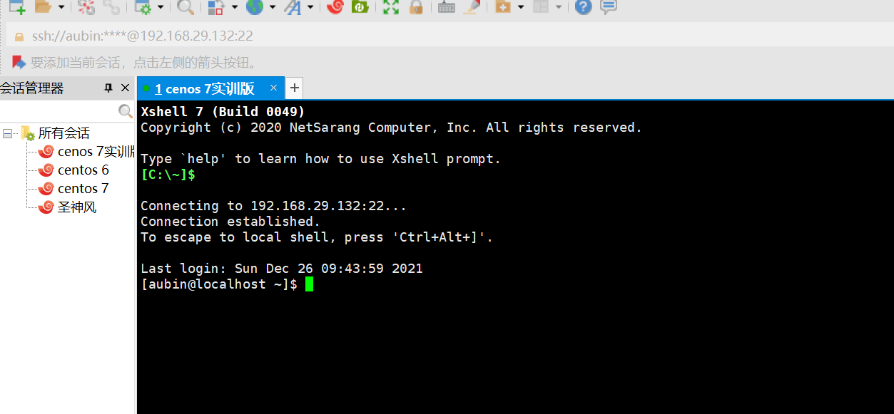 - 首先启动VM,输入密码进入centos,用xshell连接