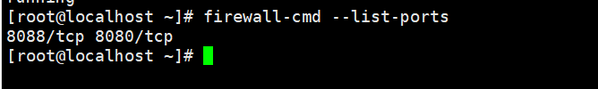 9: 然后查看防火墙开放的端口,命令 firewall-cmd --list-ports ,如果没有内容代表没有开放端口, 需要手动开放,这里我们开放8080端口. 命令 firewall-cmd --permanent --zone=public --add-port=8080/tcp(parmanent 参数一定要加上,代表设置永久生效,如果不加,服务器重启后即失效), 添加后 重启防火墙 firewall-cmd --relaod 或 systemctl reload firewalld .再次查看 firewall-cmd --list-ports ,有8080端口即可
