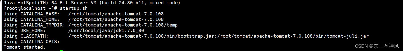 7: 输入命令 Java-version , 和 startup.sh 出现以下画面即代表jdk和tomcat配置成功