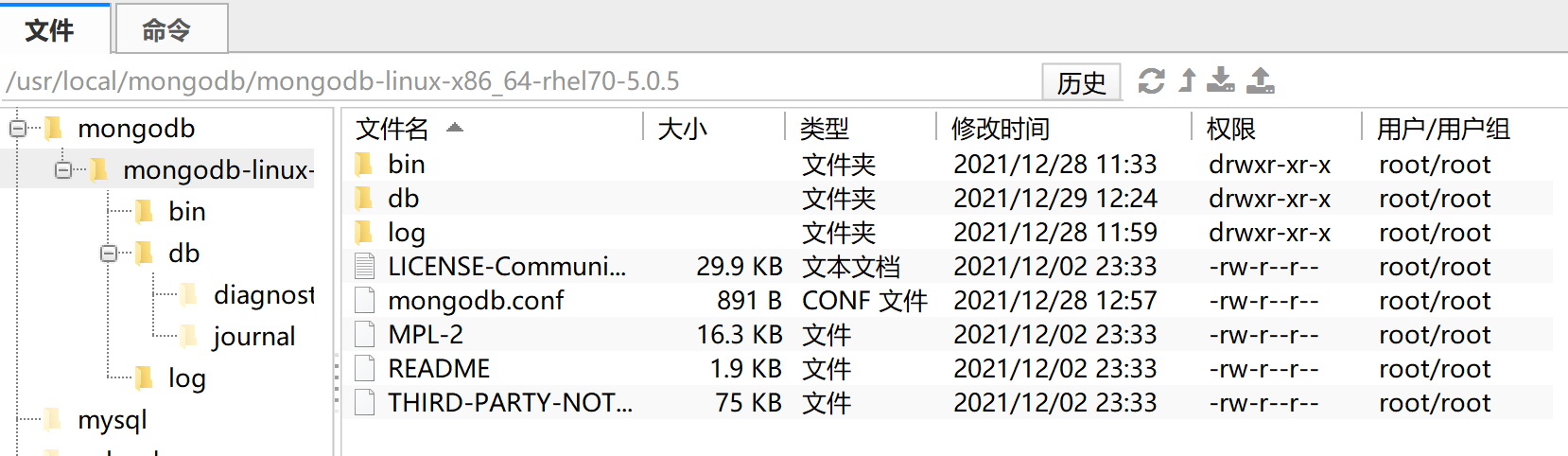 cd /usr/local/mongodb/mongodb-linux-x86_64-rhel70-5.0.5