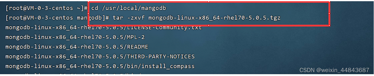 tar -zxvf mongodb-linux-x86_64-rhel70-5.0.5.tgz