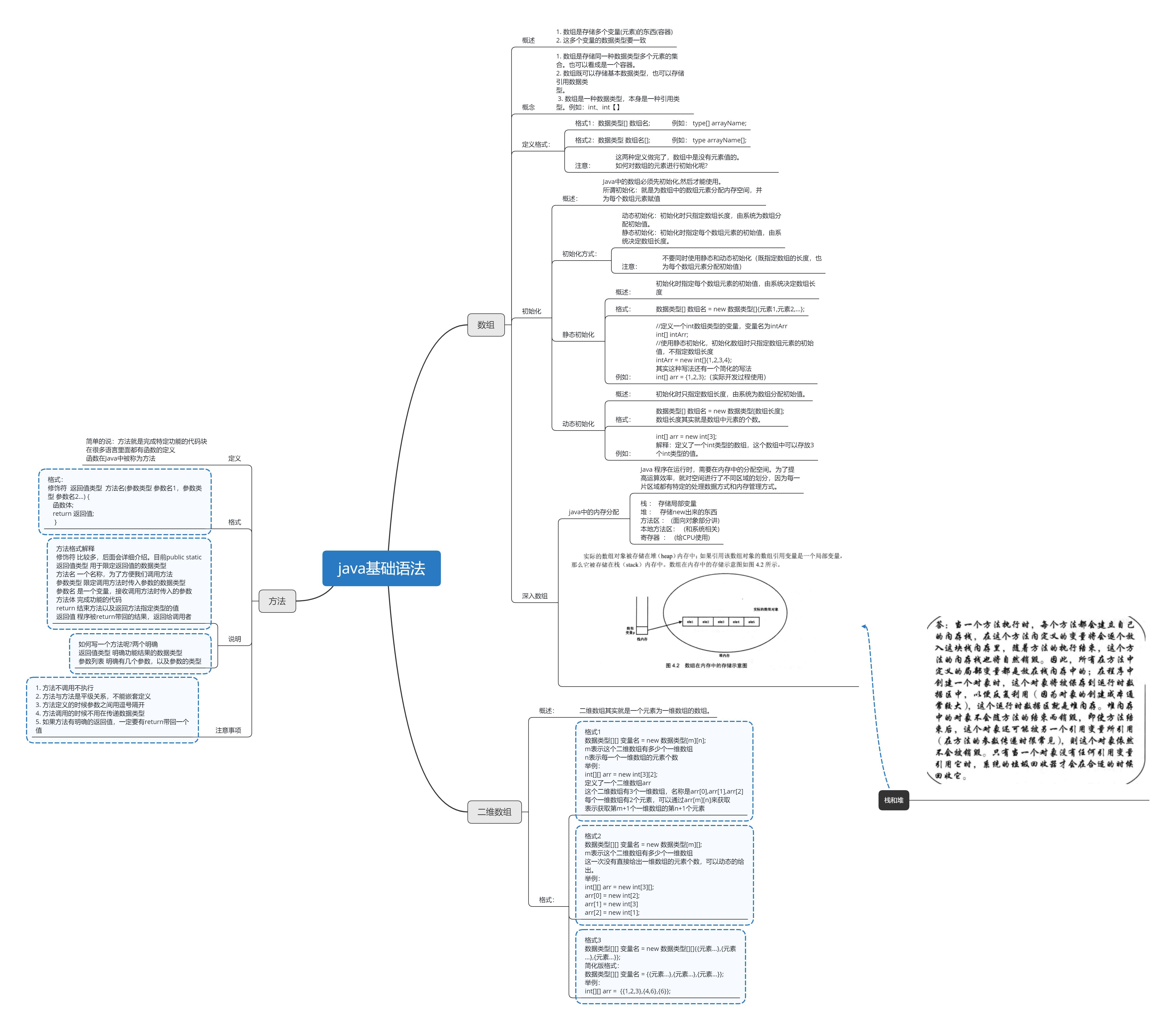 java基础语法—数组和方法(思维导图)思维导图知识点整理数组和方法:学习参考:《疯狂Java讲义》 第3版、15版黑马 刘意老师教学视频版权声明:本文为hewenqing1原创文章,遵循CC 4.0 BY-SA版权协议,转载请附上原文出处链接和本声明。原文链接:https://blog.csdn.net/hewenqing1/article/details/103422087
