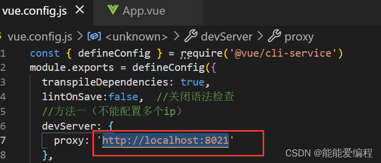 配置:vue.config.js中配置代理服务器,proxy为实际服务器ip