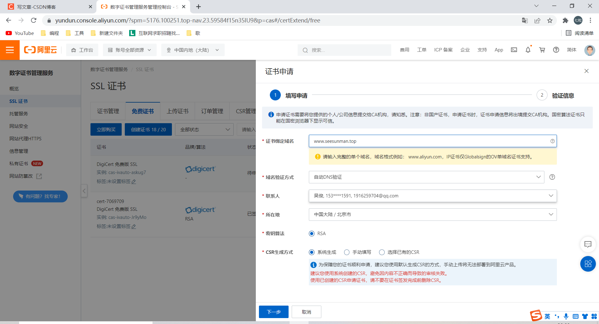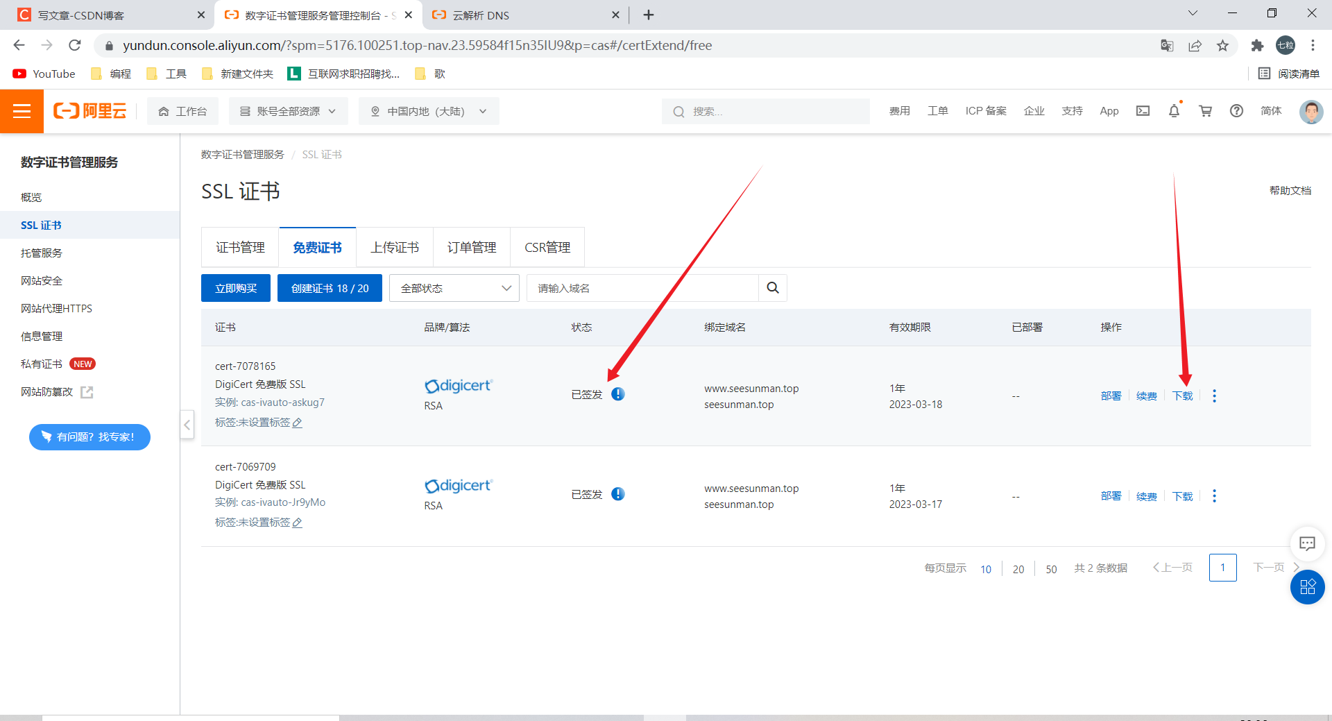 1.1本文默认你拥有一台阿里云服务器和一个域名,并且已经将域名备案。