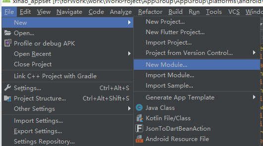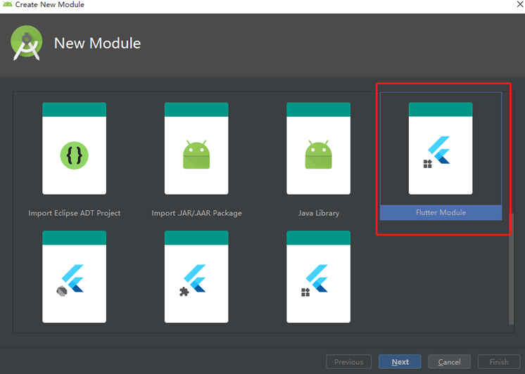 在已有Android工程中集成flutter,可以使用AndroidStudio的new Flutter Module实现,方便快捷。