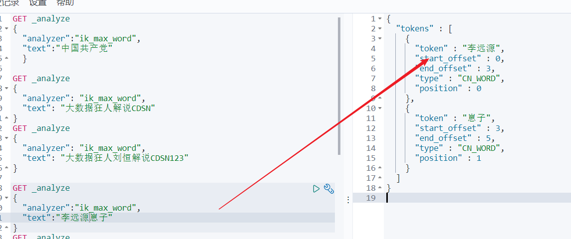 ik_max_word : 细粒度分词,会穷尽一个语句中所有分词可能,测试!