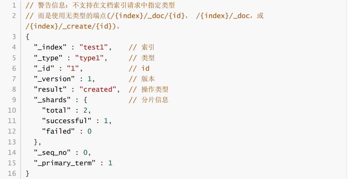// PUT 创建命令 test1 索引 type1 类型 1 id