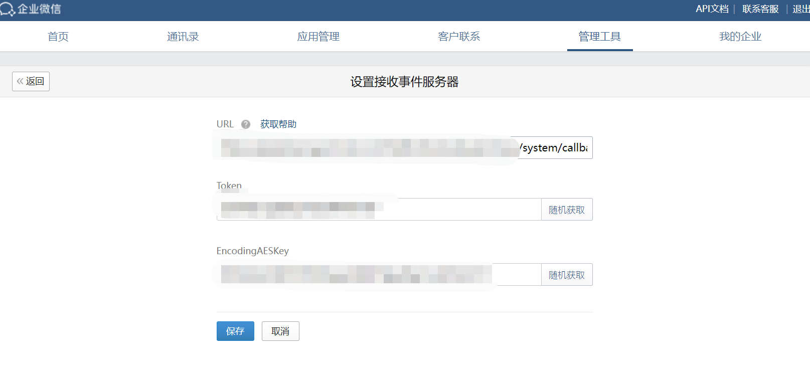 1.1打开企业微信后台--》管理工具--》通讯录同步配置回调地址