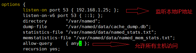 4、首先修改/etc/named.conf主配置文件。