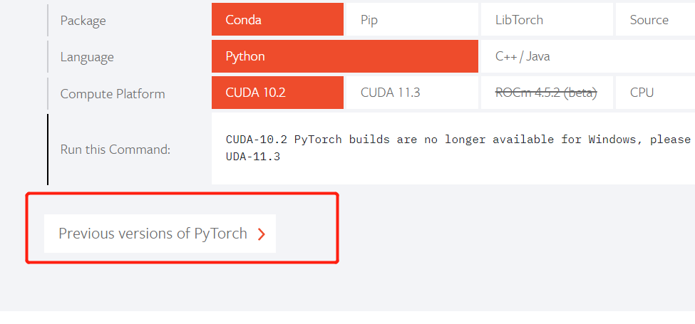 3、进入网址:Previous PyTorch Versions | PyTorch