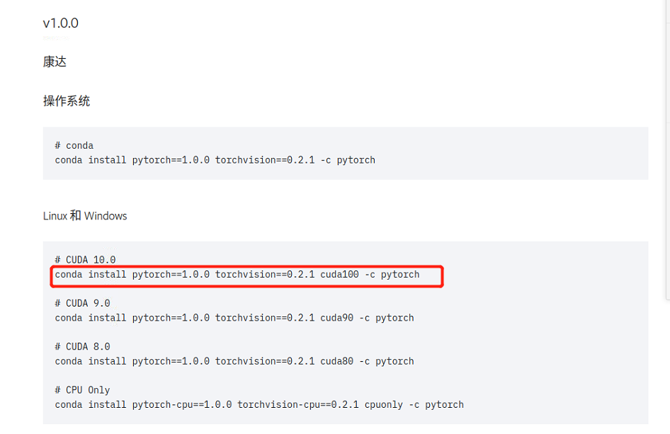 1、创建环境:conda create -n pytorch1.0.0
