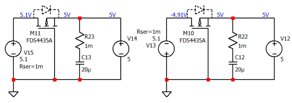 基本的PMOS防反接电路,利用PMOS的寄生二极管: