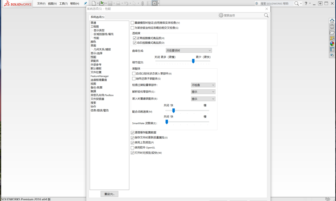 设置完毕后,再新建零件,就不会产生崩溃的情况了。但是这么做会让制图过程非常慢。