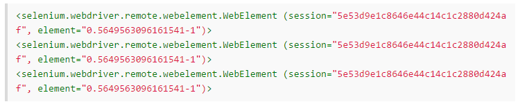 可以看到得到的内容就变成了list类型,list的每个元素都是WebElement类型。