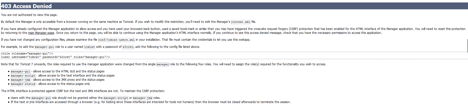2.点击Manager App,未配置的情况下, 会返回403错误