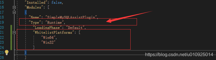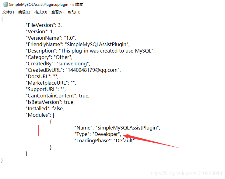 一般我们项目中用到的插件类型常用的有以下三种:"Developer"、"Editor"、"Runtime"。Developer类型的插件在编辑器和开发模式下是可用的,但是发布会过滤,也就是不会被引擎打包工具打包进去的,Editor类型只在编辑器模式下有效,Runtime类型为在运行时有效,或者也可以理解为任意模式下有效。所以如果你的插件需要在运行时或者打包发布进去时,则需要使用Runtime类型,并且如果需要成功发布,还可能需要做一些跨平台限定,比如说有的需要在Win64平台运行的,可能发布Win32就会报错,或者是Linux平台等等。这里废话不多说了,我后来查看了插件中的设置,发现类型是开发模式: