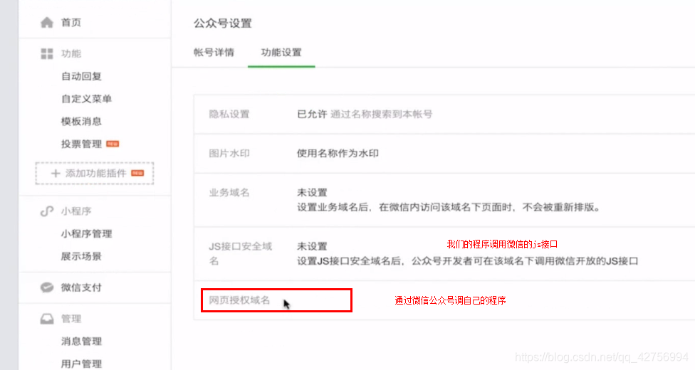 特别注意:个体不能开通微信认证也就无法进行微信授权,也就不能像服务号一样调用我们自己写的服务了