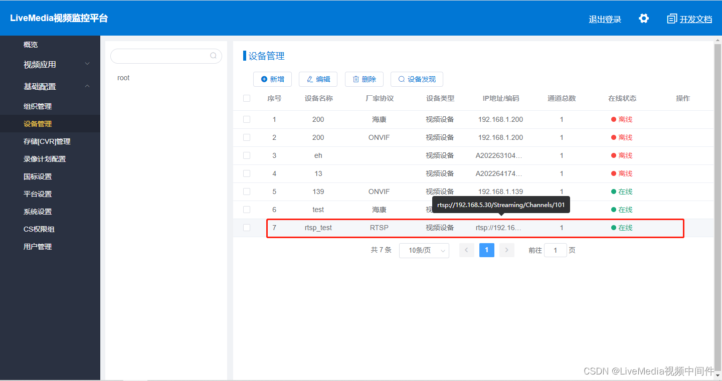 RTSP设备添加