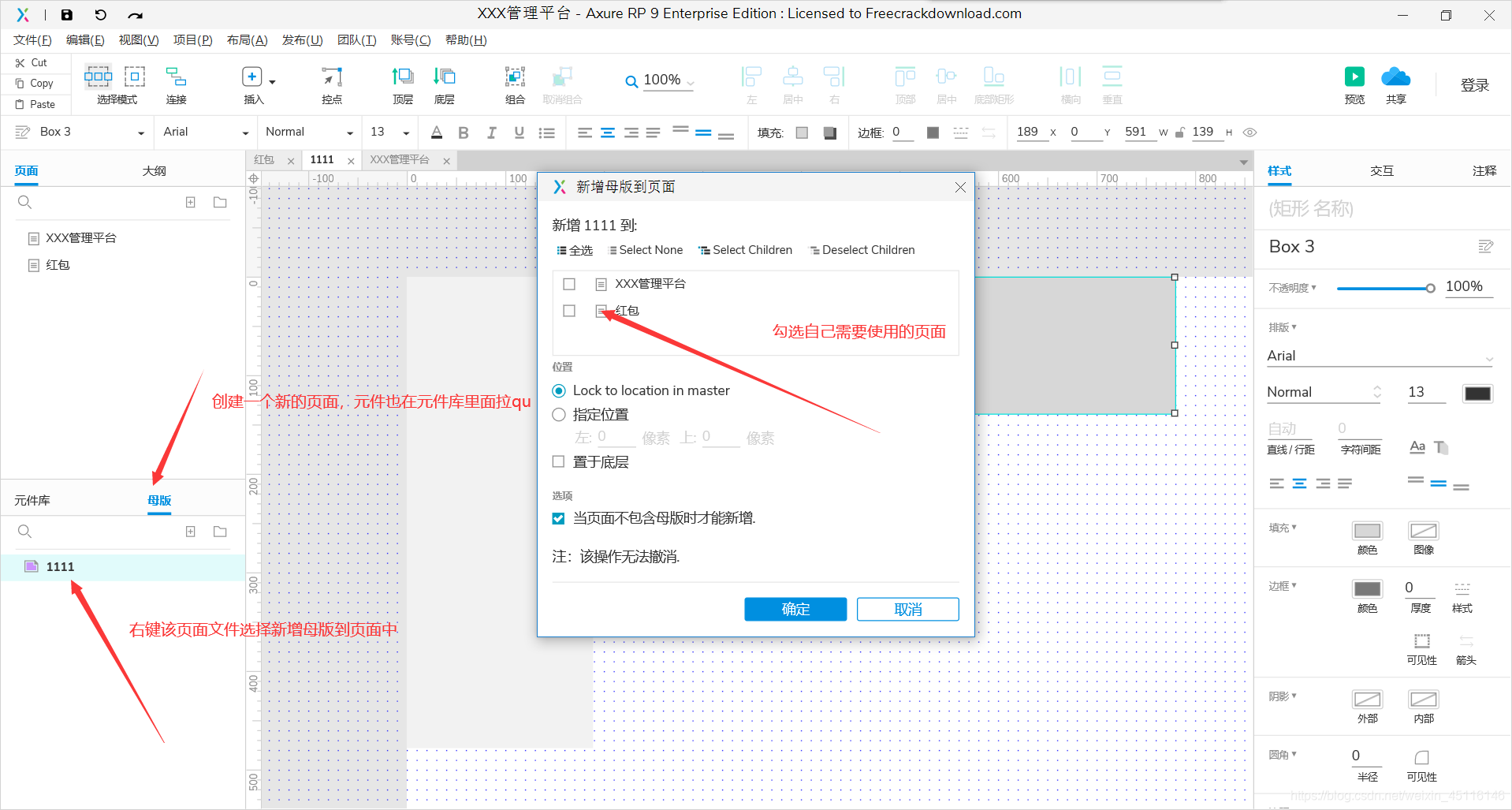 作用:风格的统一、元件的复用,每个页面都可以直接使用母版内的东西