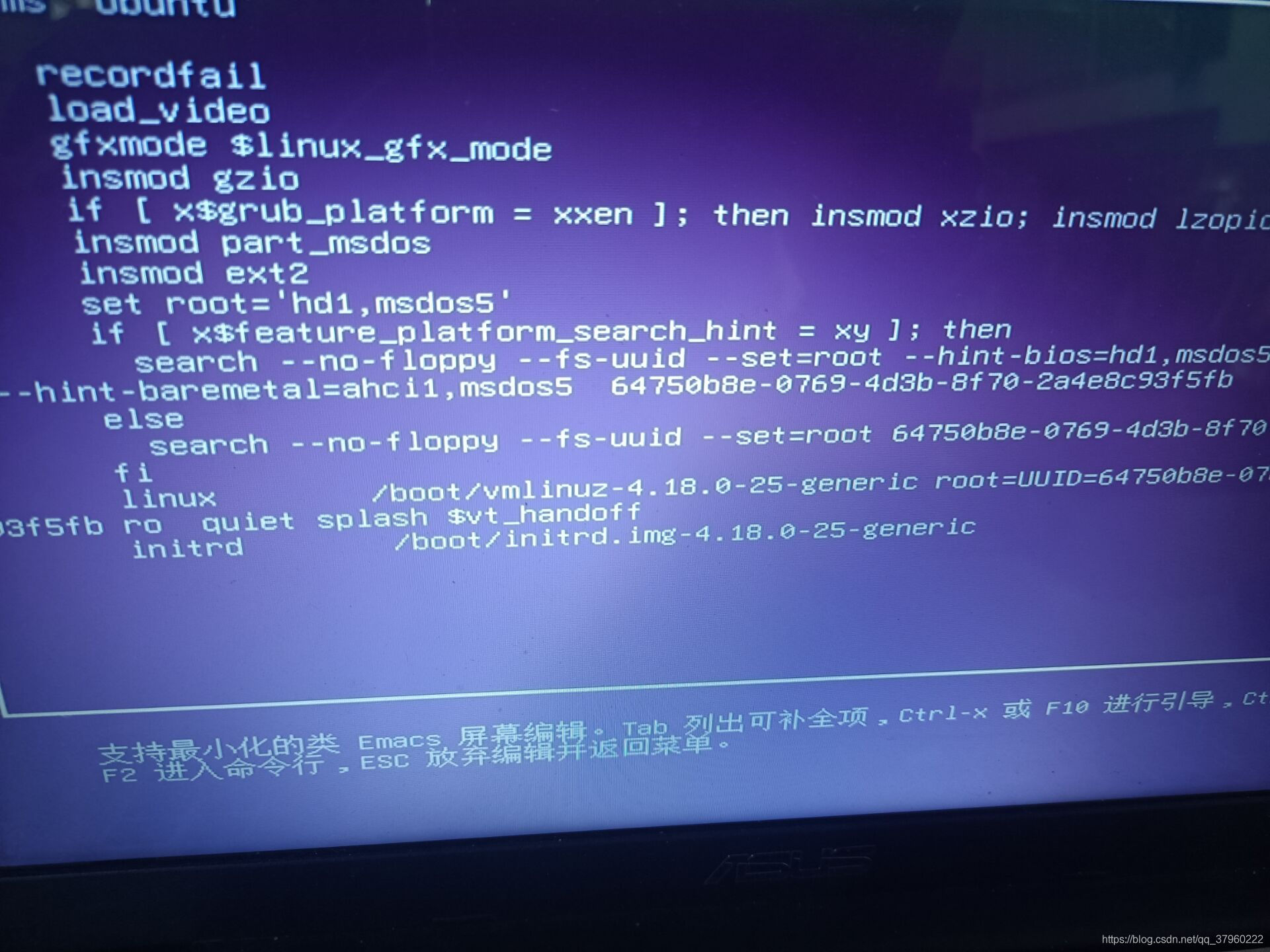 电脑开机后,会有一个如下图的页面,然后按e,修改ro quiet.....handoff为rw single init=/bin/bash,然后按ctrl+x进入