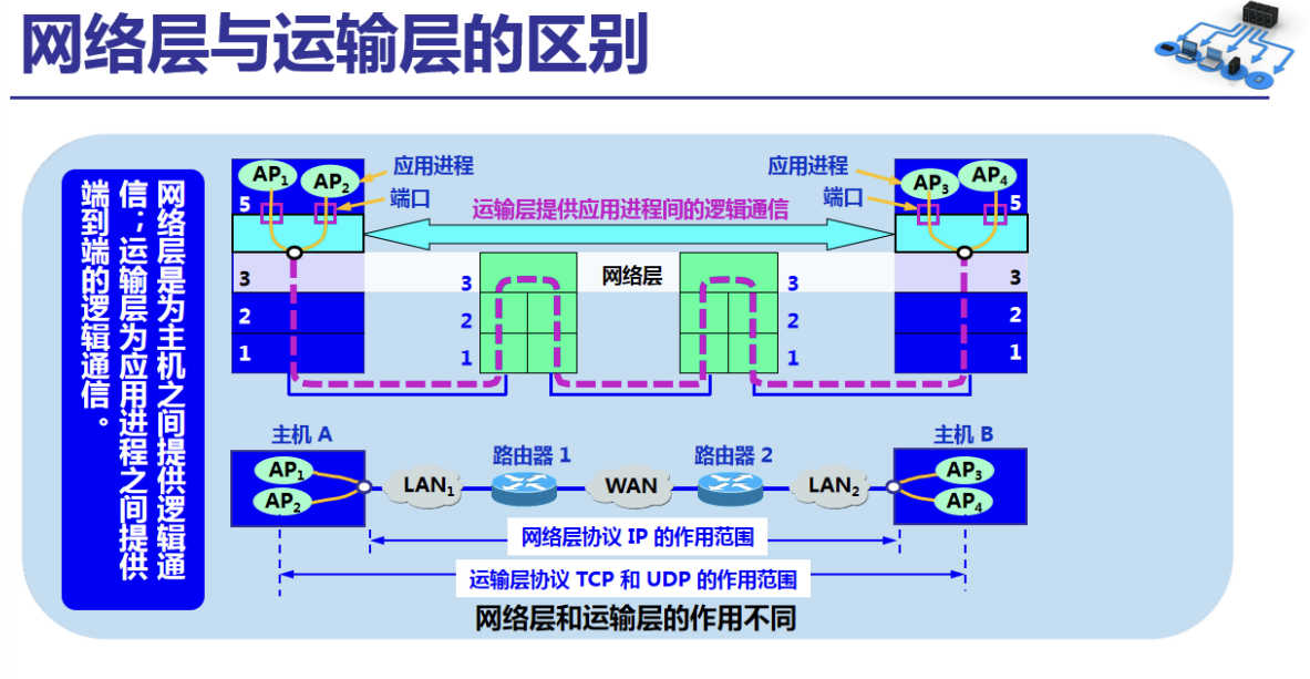 从运输层来看,通信的真正端点是两台主机中的应用进程,但是更严格的说法是:两台主机中的应用进程互相通信