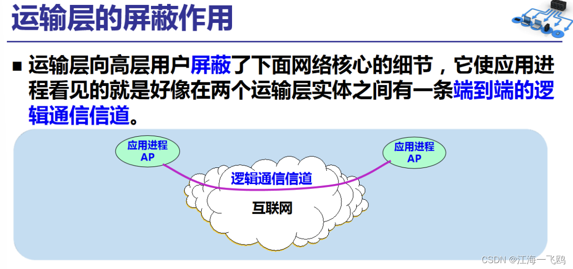 UDP用户数据报是在运输层的端到端抽象的逻辑信道中传送的