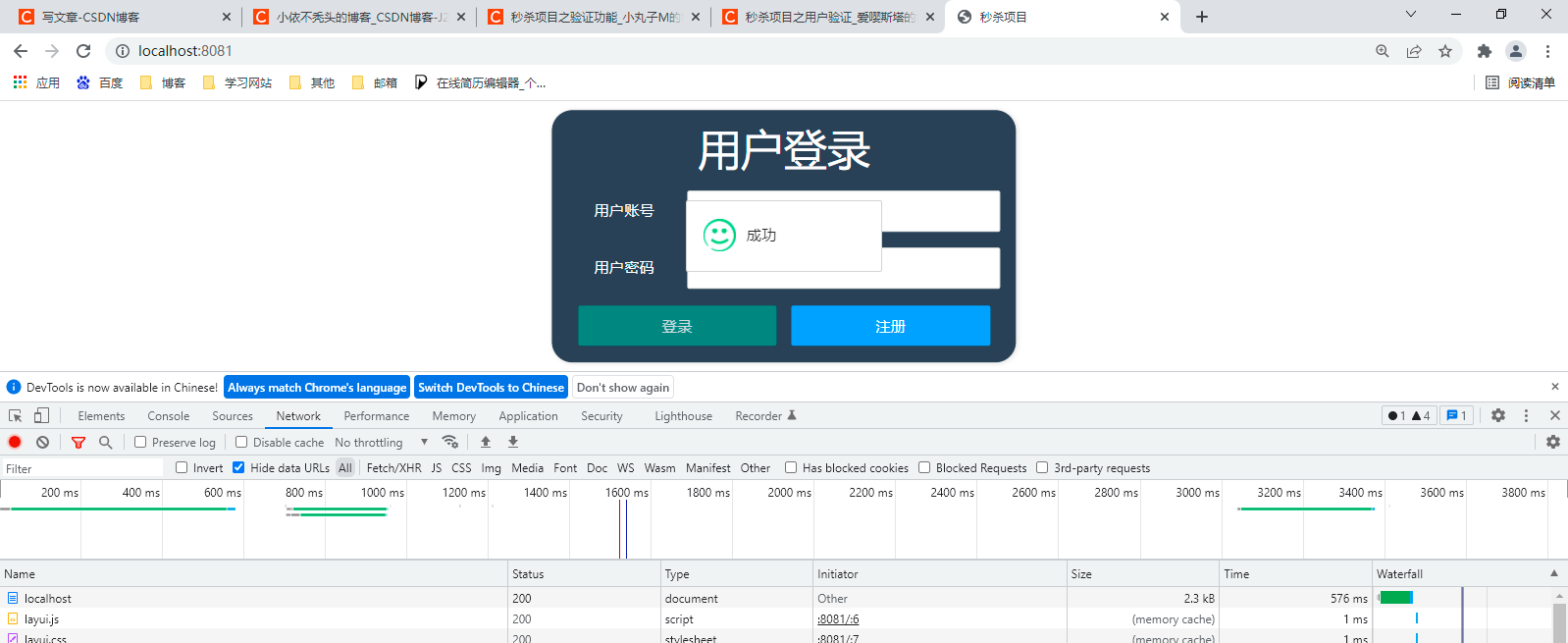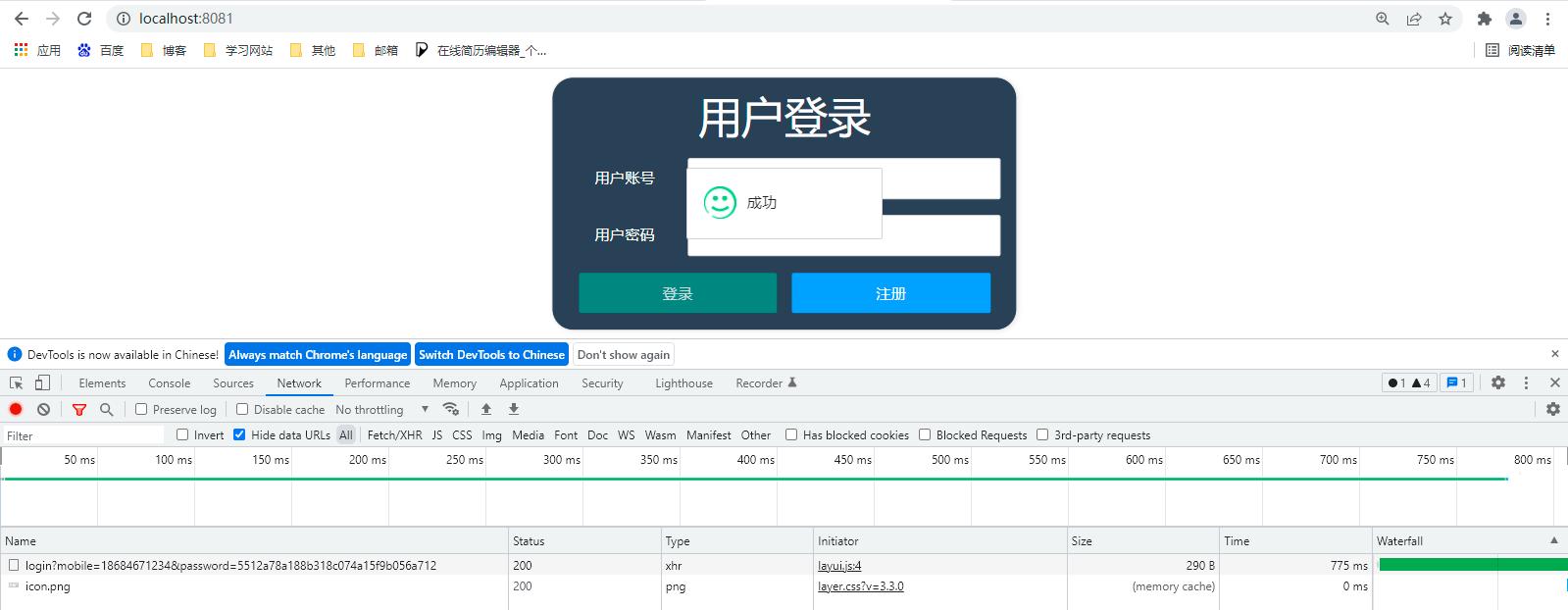// 调用service的登录验证