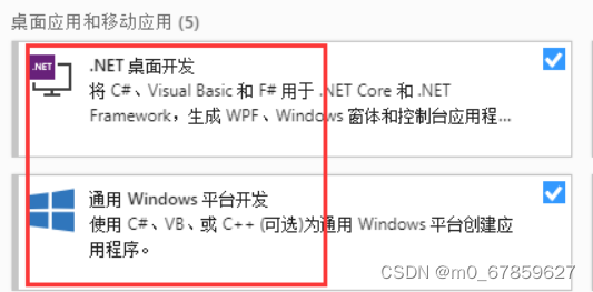 打开后只需要勾选下面的通用windows平台开发即可,由于我是多安装了。