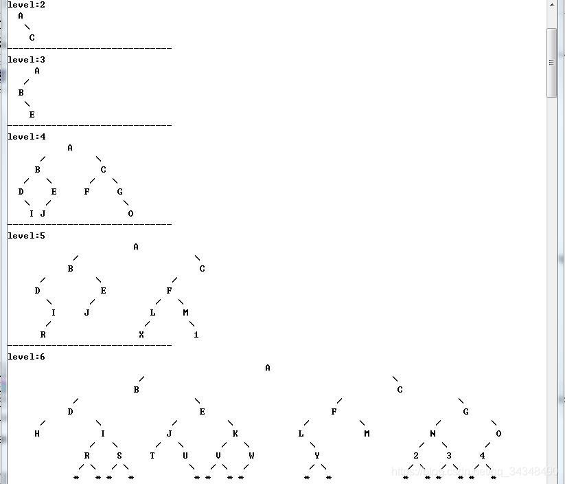 这个东西搞了我两天,不过最后写出来还是挺开心的,先来展示下打印一棵满二叉树的成果吧。