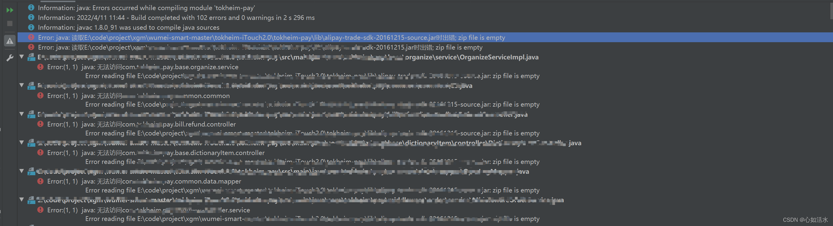 这里看到一直报错指的是找不到alipay-trade-sdk-20161215-source.jar这个jar包