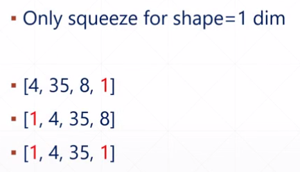 # squeeze剔除张量维度方向上长度为1的维度